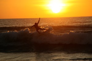The next morning, we enjoyed a delicious breakfast that was brought to our front porch. We had fruits, eggs, bacon, and pastries and some amazing fresh fruit juice. After that we enjoyed a morning of reading (me for my dissertation and John for fun) by the pool. By the afternoon, we were ready to do a bit more exploring. We headed to Kuta, the touristy beach of Bali. During the day, this beach was nothing compared the beach near our hotel. It was crowded with lots of tourist traps. Kind of like Myrtle Beach when compared to Hilton Head. I was starting to wonder what the big deal was with this particular part of the island. Then, the sun began to set and I saw what all the fuss was about. In the foreground were the shadows of surfers trying to catch one last wave before turning in for the night and in the background, the most expansive sunset I’d ever seen. It was gorgeous.