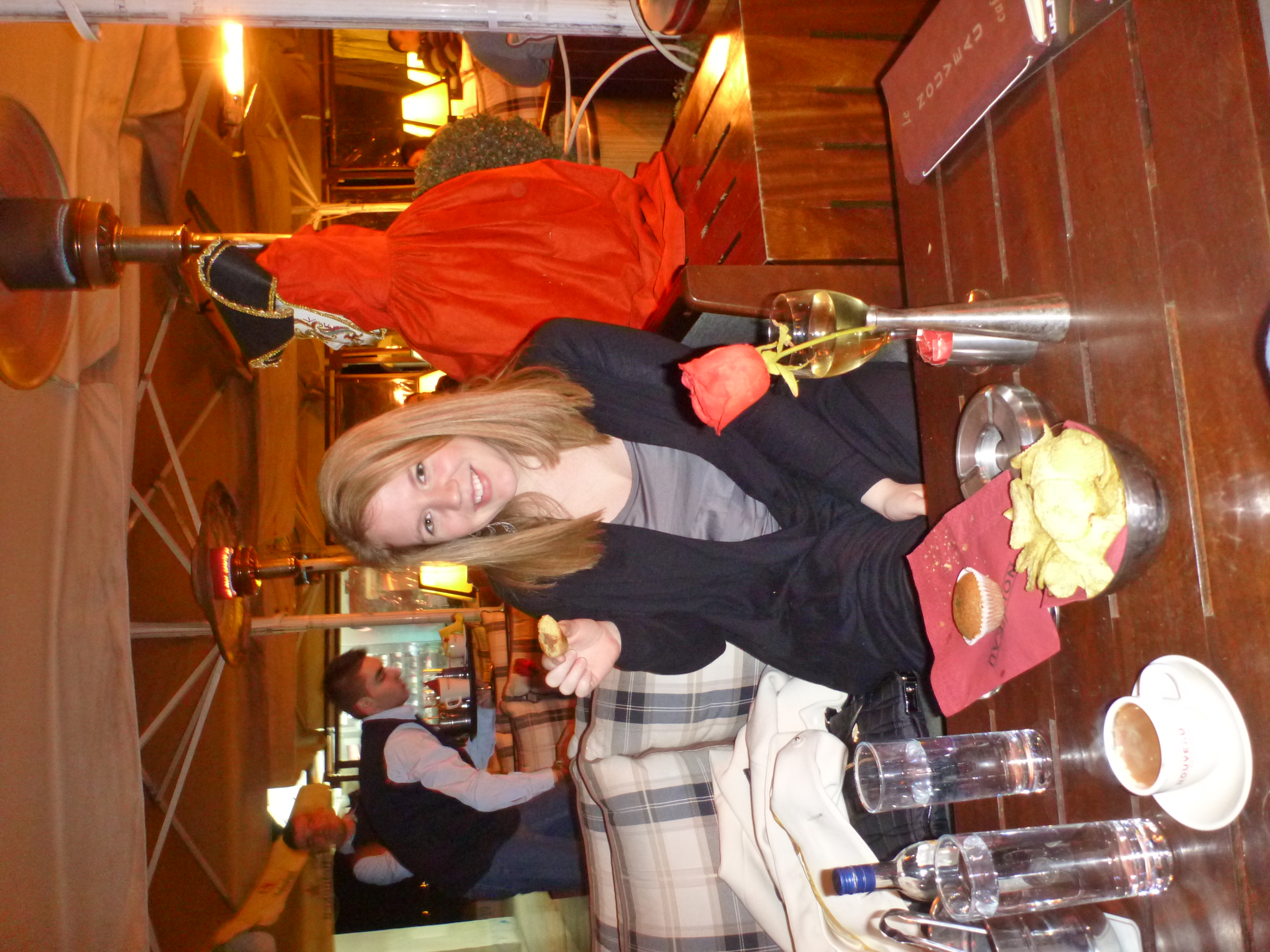 Our first night, we had a wonderful dinner at a restaurant on the main pier and then headed to bed. The next day we explored the city, went to a coffee shop, the first place I’ve ever been where they didn’t have an English menu. Fortunately “espresso” translates.” Then we had a lovely evening hopping from bar to bar and ended up at Malt and Jazz, a music venue where they were playing Greek top 40 hits. It was awesome!